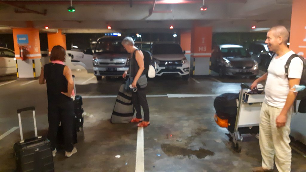Een vliegmachine van de prijsvechter Scoot, de armleuning van Miranda ligt open en de draden van de afstandsbediening steken eruit. Op het tafeltje blijft niks staan doordat het mank is aan één armpje. Daar hebben we dus 10 uur op gewacht! Maar goed, ruim twee uur later zijn we in Denpasar. De covid-controle, het verstrekken van de visa, het loopt allemaal bijzonder snel, ook al omdat we aansluiten bij het rijtje 65+ en disabled! Met Rob en Miranda als onze behulpzame begeleiders.