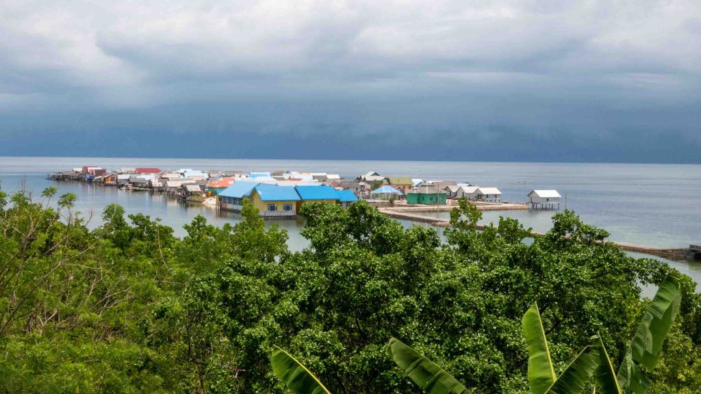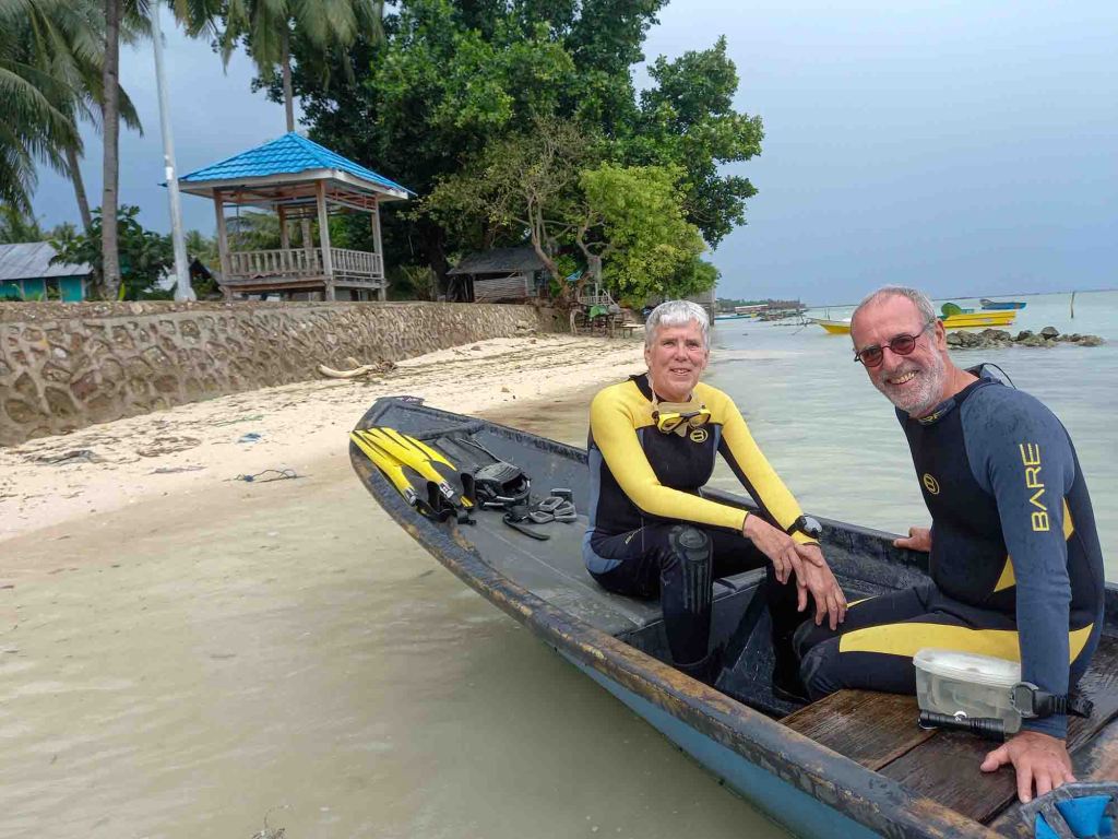 Door weer, nu naar een Bajo-dorp Bajo labando dat met het vaste land verbonden is. We zien een groepje onder een luifel zitten en Cockie spot onmiddellijk dat er twee plastic tasjes met jackfruit staan. Oh jackfruit, zegt ze, meteen gaat het zakje open en eten maar. Het is geweldig hoe gastvrij de mensen zijn die we ontmoeten. We maken een wandeling door het dorp.