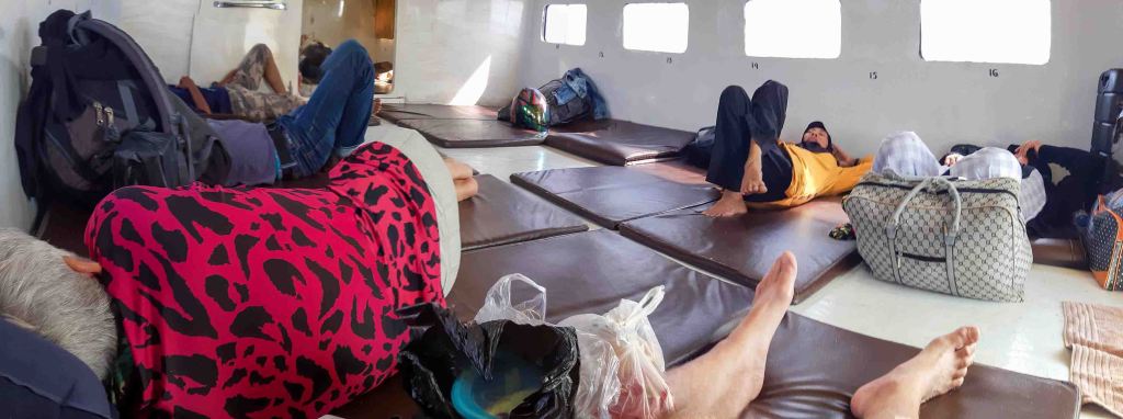 Om 12:30 vertrekken we naar de haven, Imim heeft om 13:00 uur een boot naar Kaledupa, wij om 14:00 uur naar Tomia. We zullen hem voor een paar dagen moeten missen. Hij regelt de kaartjes voor onze boot (VIP-klasse) en neemt zelf een wrak uitziende ferry.