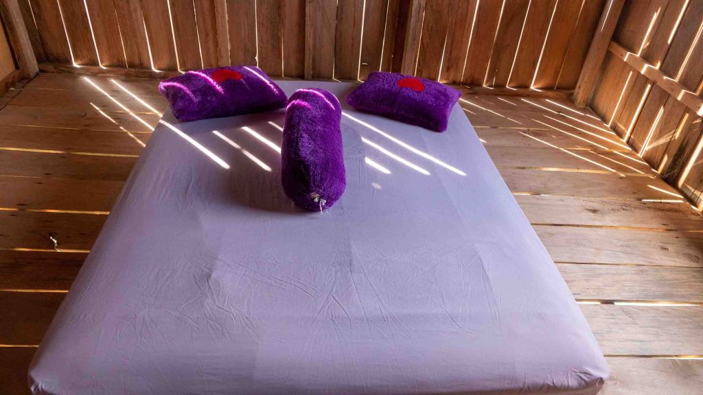 We krijgen een kamer in een huis toegewezen, er ligt een matras op de grond en daarop twee harige kussens met een rood hartje. ‘They give you the best they have’, zegt Imin.