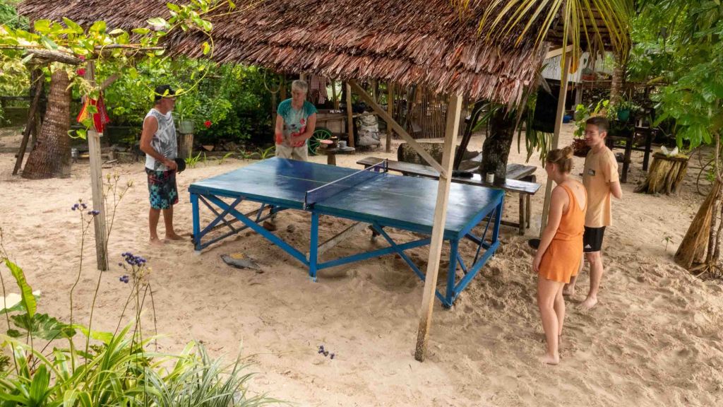 Het duurt tot een uur of 11 voordat het droog wordt, tijd voor een potje internationaal pingpongen: Cockie en Spaanse Kike tegen Patricia en Max uit München. Het Nederlands-Spaanse koppel wordt geveegd met 3-0!