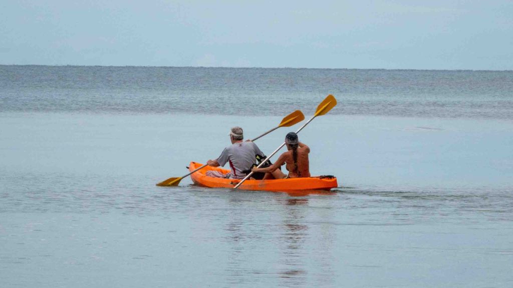 Om een uur of twee gaan Eva en Cockie weer op zeesterrenjacht. Deze keer met de kano tot aan Sandy Bay en dan snorkelend terug. Tweeëneenhalf uur later brengen ze een speciekuip vol Doornenkronen aan land.