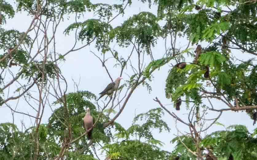 Ik heb me in de tussentijd bezig gehouden met vogelen vanuit mijn hangmat. Dat levert op: een endemische Sulawesi green imperial pigeon, Azure rumped parrot, Pacific swallow, Black-billed kingfisher en opnieuw de Brahmaanse wouw. Leuk hè, die monomane biologen!