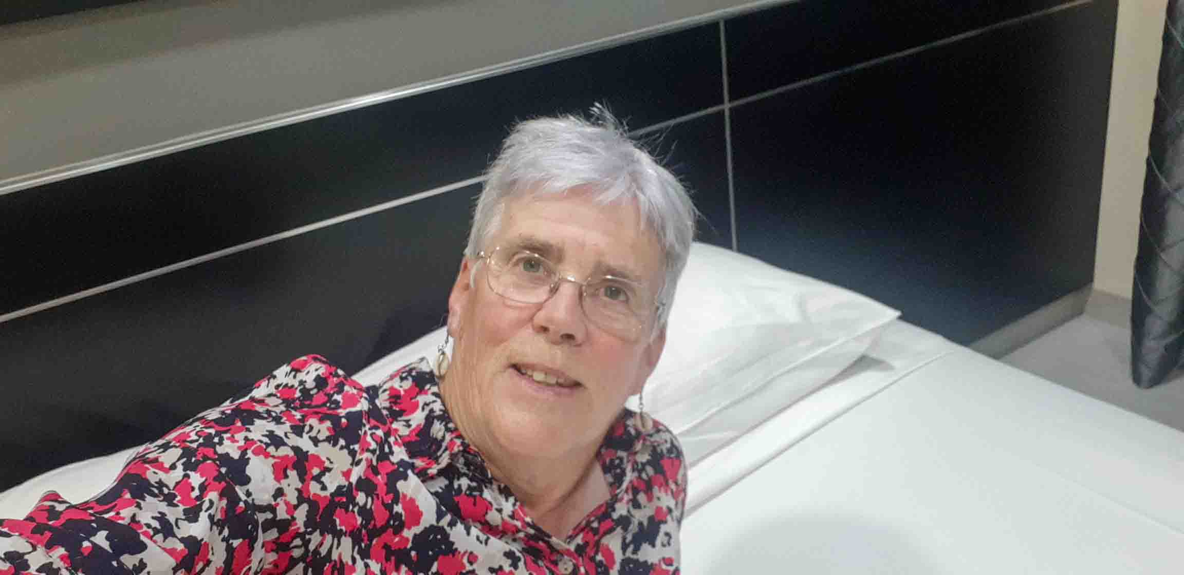 Cockie in haar hotelbedje