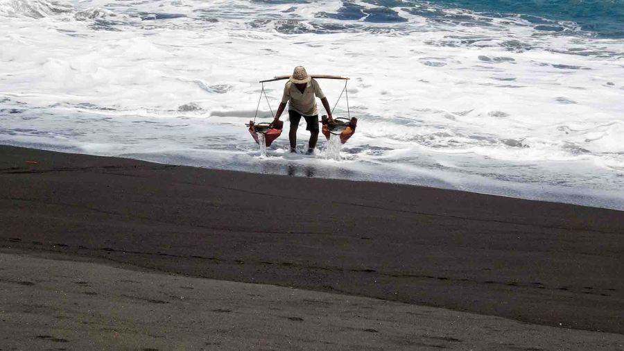 Zeewater scheppen voor zoutwinning