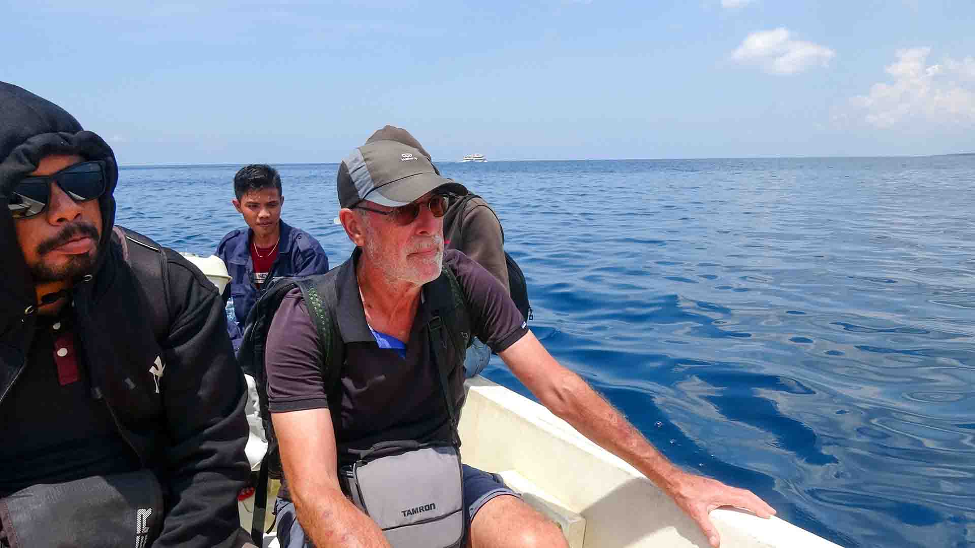 Vanuit de ferry in het bootje naar de kust van Kaledupa