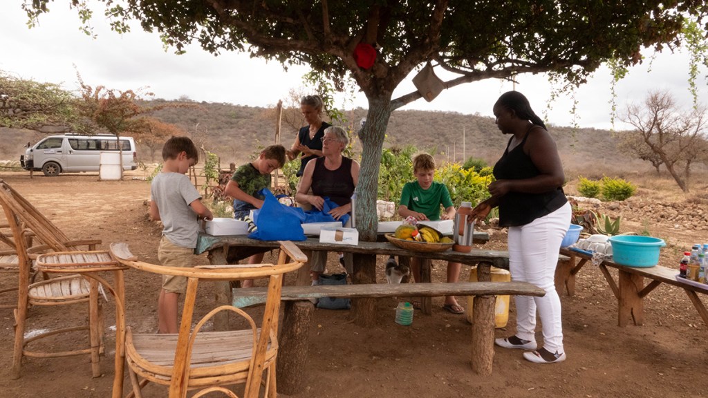 Halverwege de wandeling verlaten we het pad even voor een tussenstop een kleine kilometer verderop; we kunnen natuurlijk niet zonder koffie!