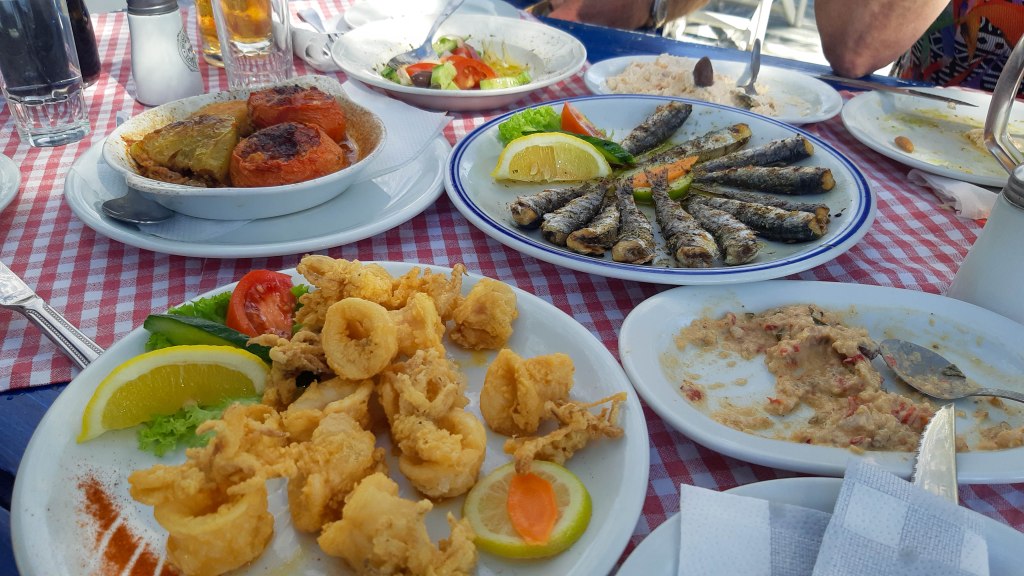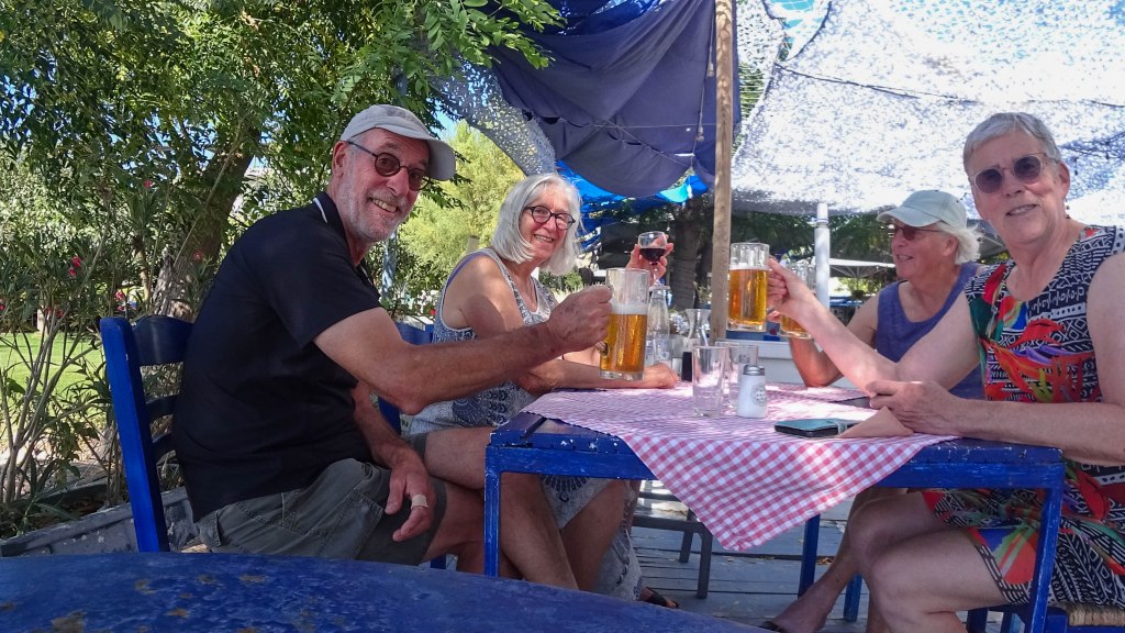 Om ongeveer 14:00 zijn we terug bij de auto, even naar huis en opfrissen en dan naar onze favoriete lunchplek in Giálova. We hoeven de drankbestelling niet meer door te geven: ‘same as yesterday?’. Dan het dagelijkse uitbuiken, nog even het dorp in voor een versnapering, een spelletje spelen en dan is de dag alweer voorbij. Er is iets met een gezegde van vliegende tijden en het naar je zin hebben, lijkt me hier wel van toepassing.