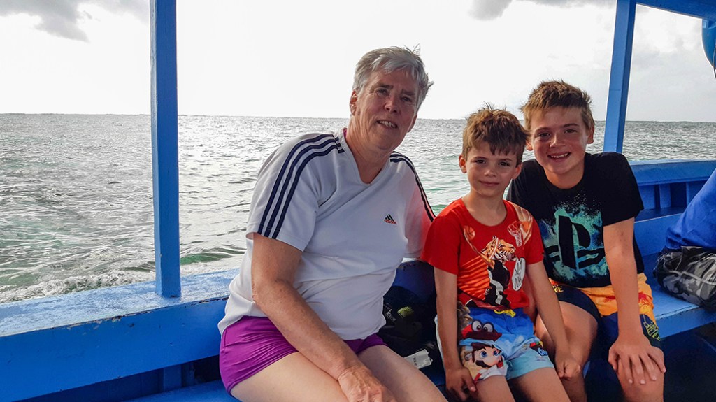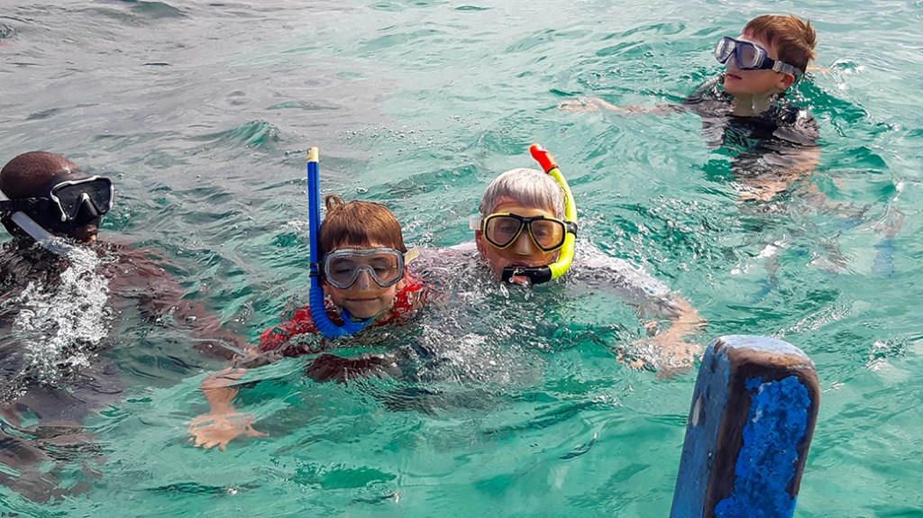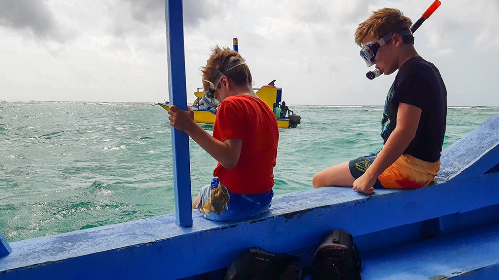 Hangend aan een reddingsboei steekt Thijs zonder snorkel steeds zijn hoofd onder water. Hij weet later goed te omschrijven wat hij heeft gezien! Helemaal blij klimmen we de boot weer in. Wat een leuke trip!