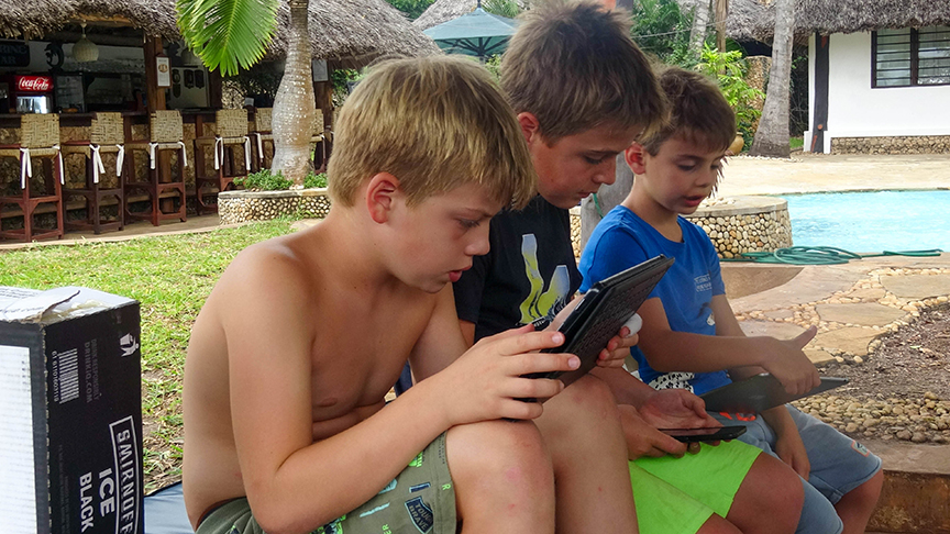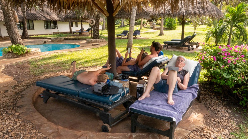 Bij het uitzwaaien van de duikers zie ik dat de zee echt heel veel rustiger is dan gisteren. Met deze boodschap ga ik naar Luc en Thijs om te vragen of ze willen snorkelen, en dat willen ze wel. Ik naar de receptie, er wordt gebeld, en we kunnen NU vertrekken.