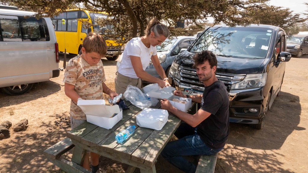 Als we weer terug zijn gaan we naar een supermarkt om wat snacks en fruit te kopen. Dat gaat er bij de inmiddels teruggekeerde duikers ook wel in.