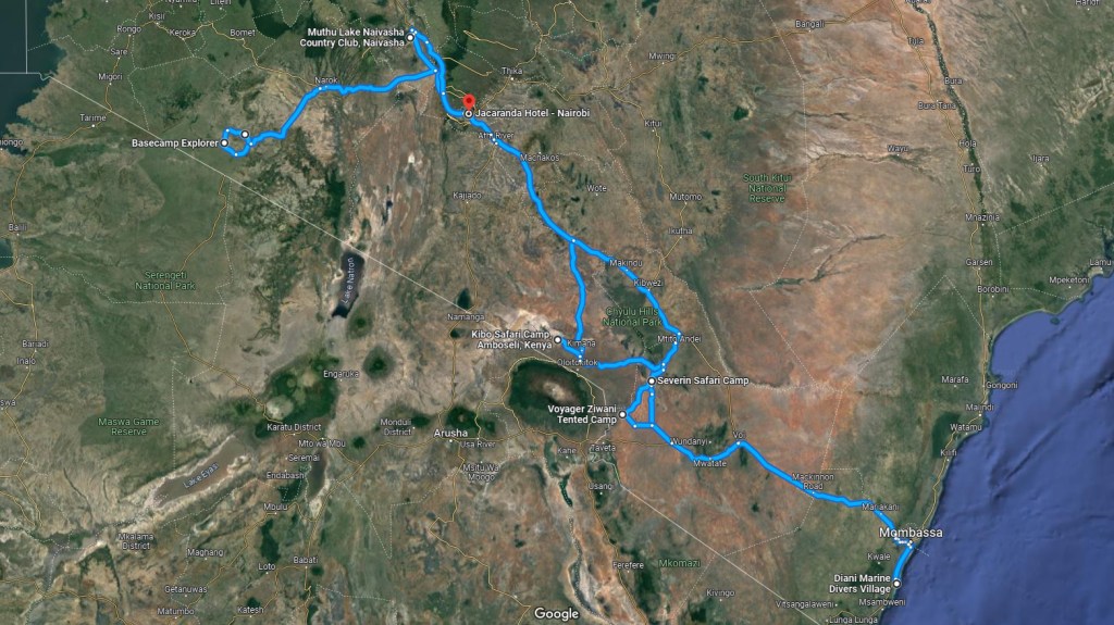 Daar is een heerlijk Keniaanse maaltijd voor ons bereid door onze kok Leto. We genieten van een runderstoof, lamspiesjes, gebakken spinazie, chapati, zilvervlies rijst, aardappelpuree en natuurlijk ugali. Aan de zeer hete salade, met wat tomaat en voornamelijk pepertjes, durven slechts twee van ons zich te wagen. We genieten enorm!