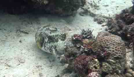 Witgevlekte koffervis met poetsvis